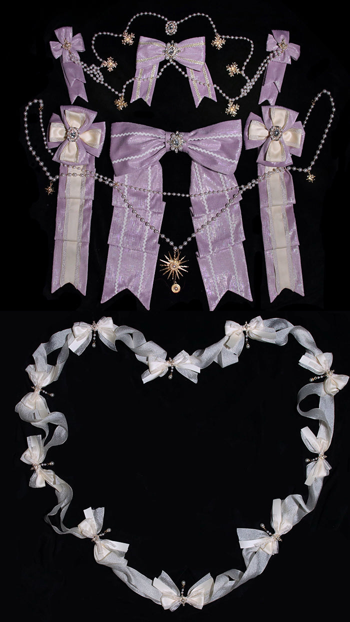 Design Elements: This Lolita adornes with intricate lace and ruffled trims. The bodice is structured with detailed embroidery, creating a regal and elegant appearance. The neckline and shoulder straps are embellished with delicate lace and bows, adding a touch of femininity. The multi-layered skirt is bordered with lace and ruffled details, creating a voluminous and graceful silhouette. Large bows at the hem and waistline enhance the layered effect, and the adjustable waist ties ensure a snug and comfortable fit.