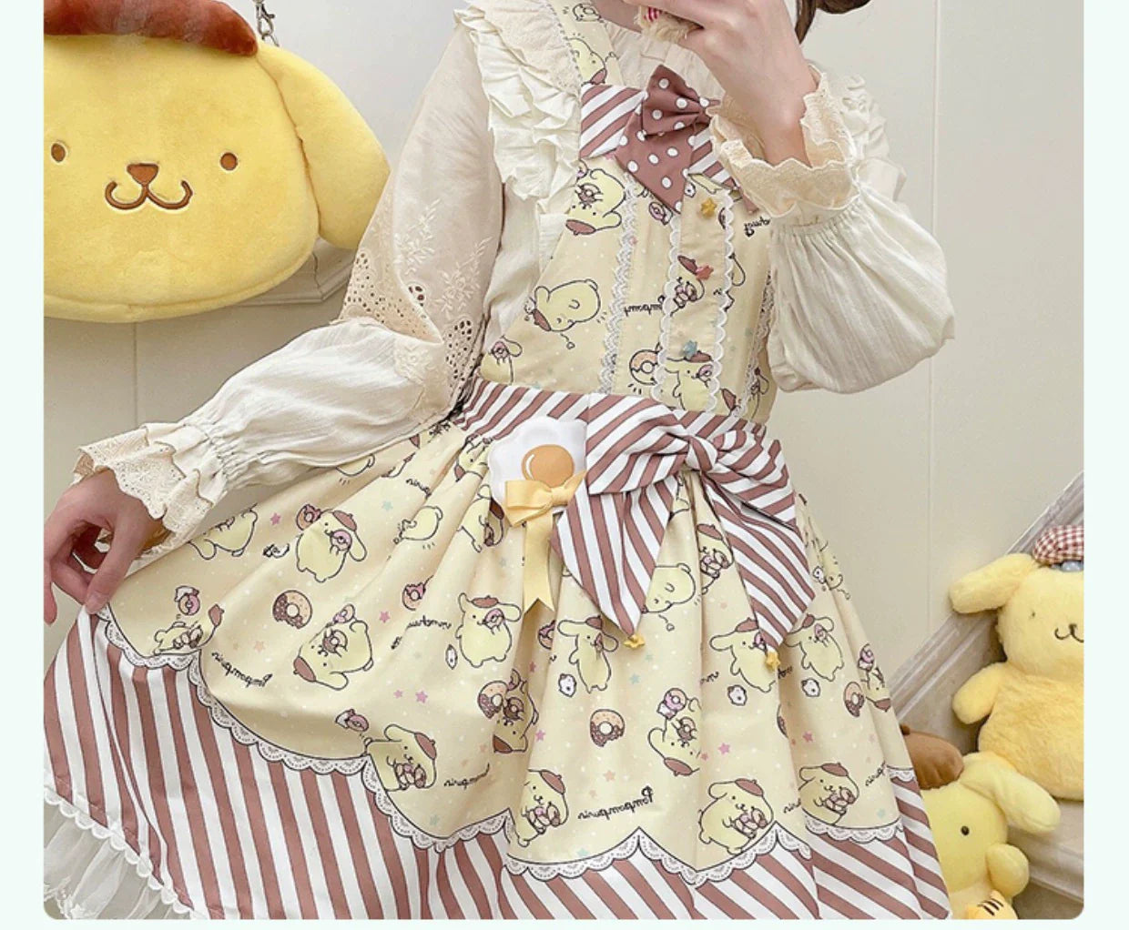 Sanrio Super Cute Sweet JSK Lolita Dress with Striped Trim & Bow