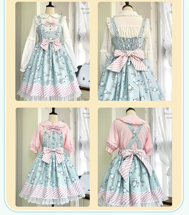 This JSK dress is adorned with a cute Sanrio cartoon print with lace-trimmed straps, wear this skirt and make you a cute charm icon~