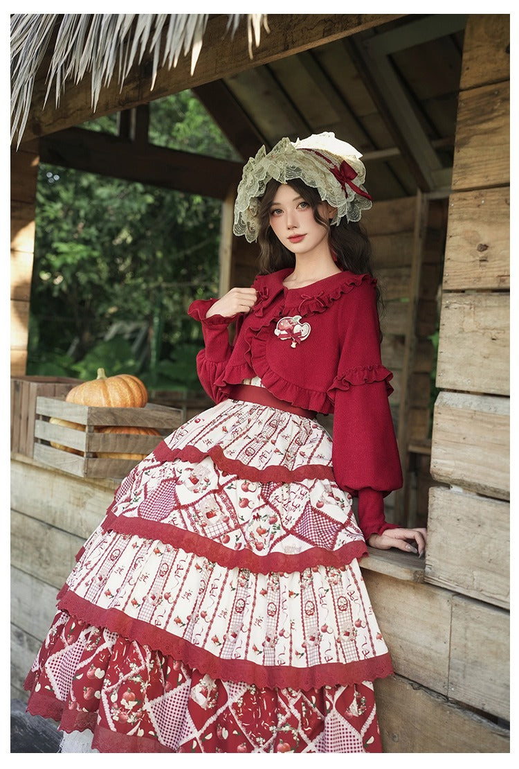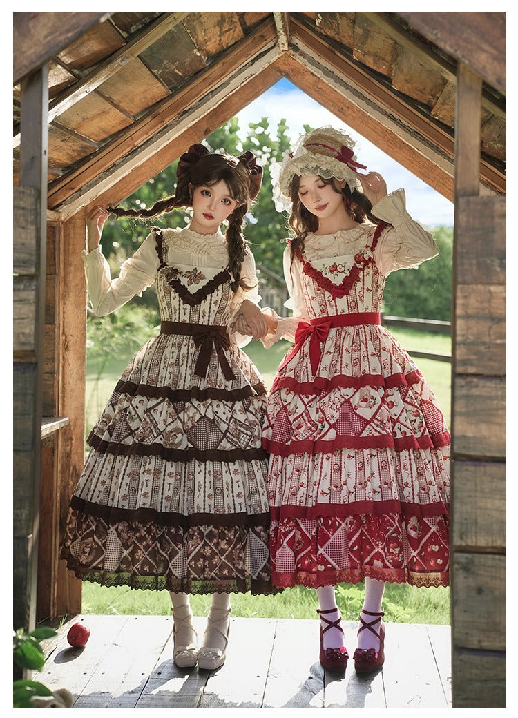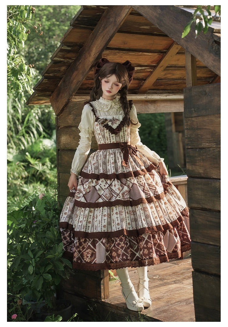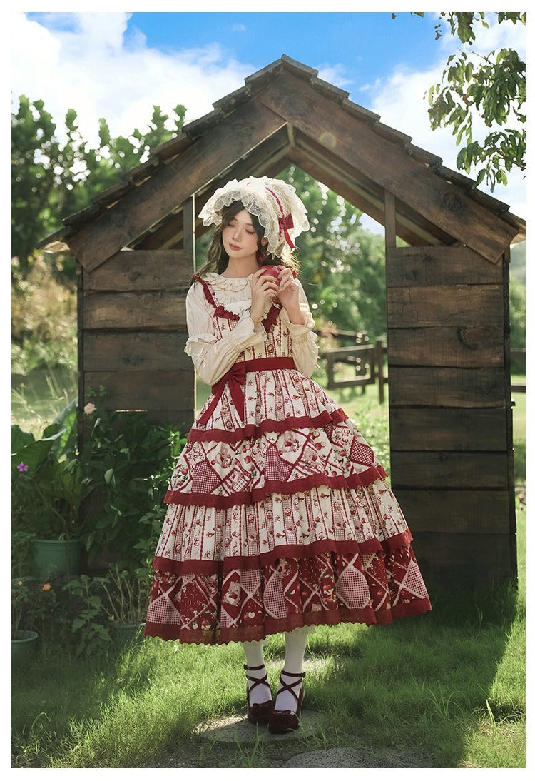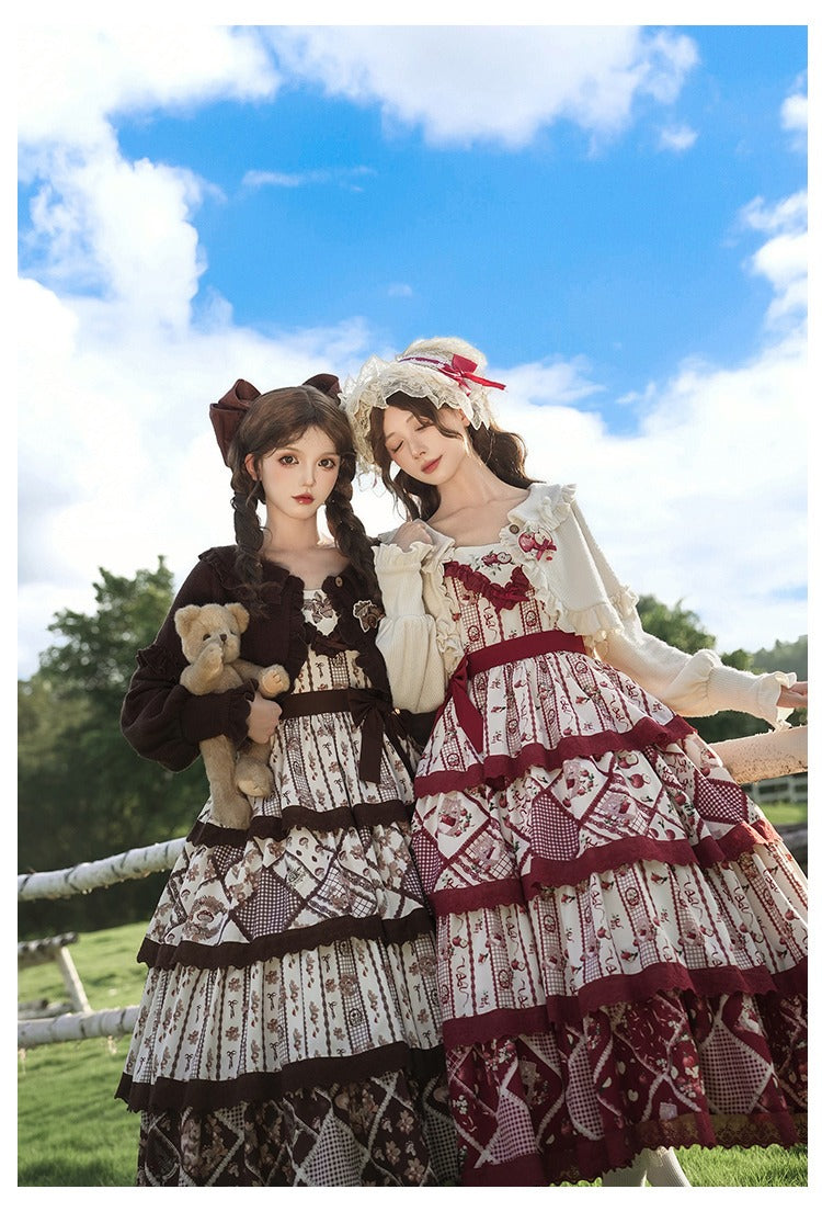 Vintage Pastoral Embroidery Tiered JSK - Four Seasons Garden Charm