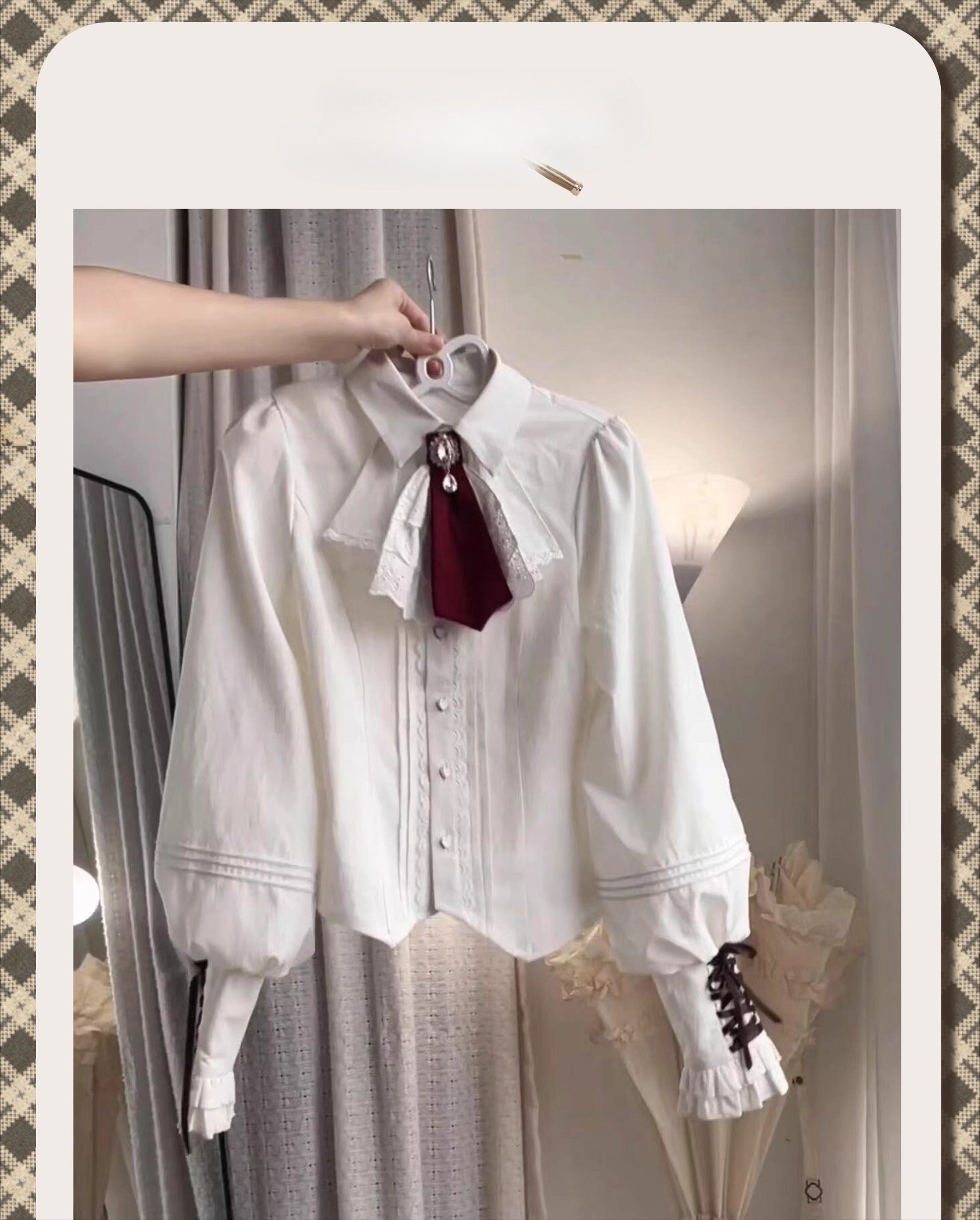 Design Elements: This Lolita - style outfit features a charming combination of a white blouse and a black suspender - style skirt. The blouse has long, flowing sleeves with delicate cuffs, exuding an air of elegance. The suspender straps are adorned with small, decorative buckles, adding a touch of sophistication. The skirt is tiered, creating a playful and voluminous silhouette. It is complemented by a matching headpiece with cute cat - ear accents, enhancing the overall Lolita charm. A small, vintage - inspired lantern accessory is held in one hand, adding a whimsical element to the ensemble.
