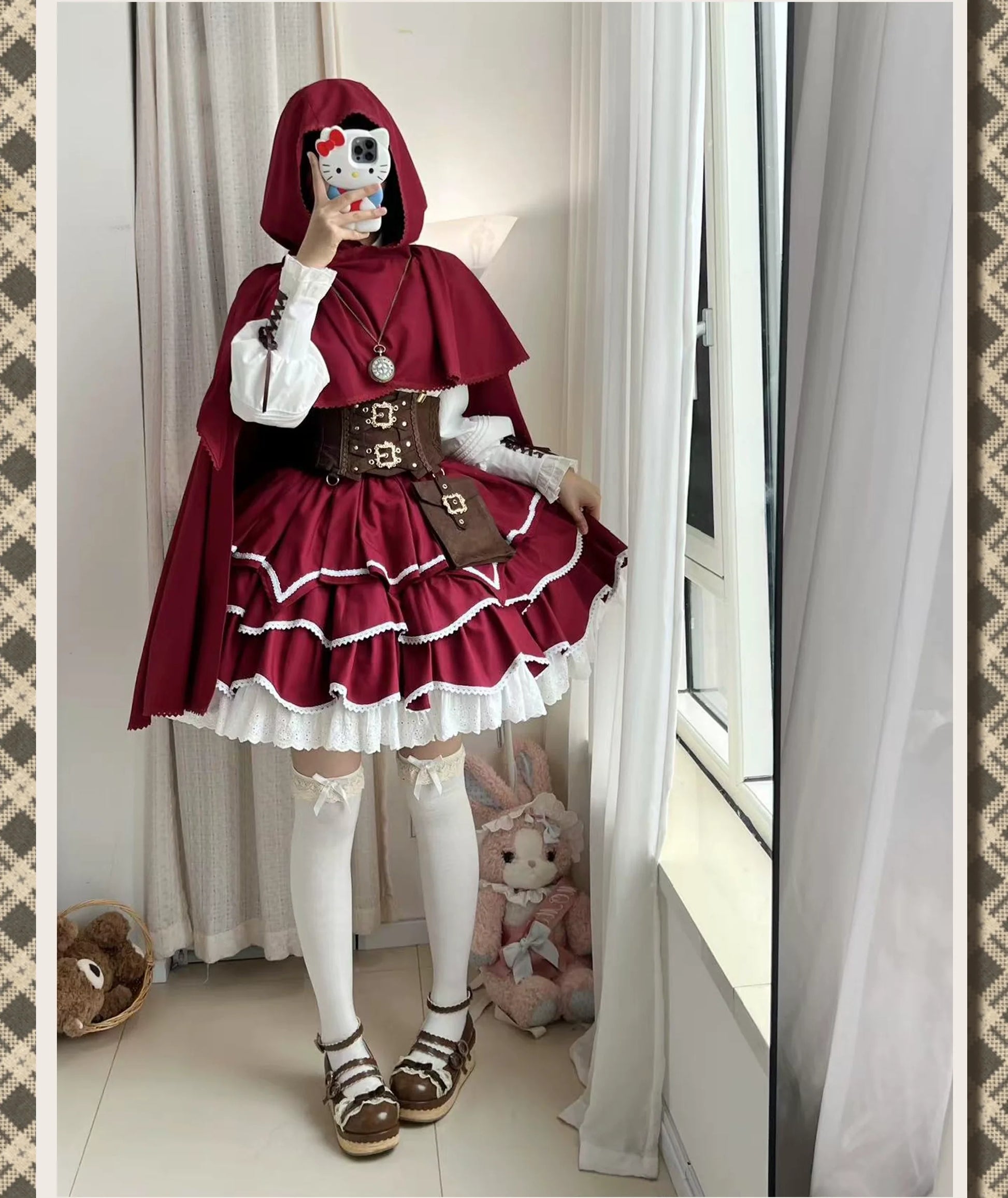 Punk Vintage Christmas Little Red Riding Hood Magical Princess Lolita Dress (Set)