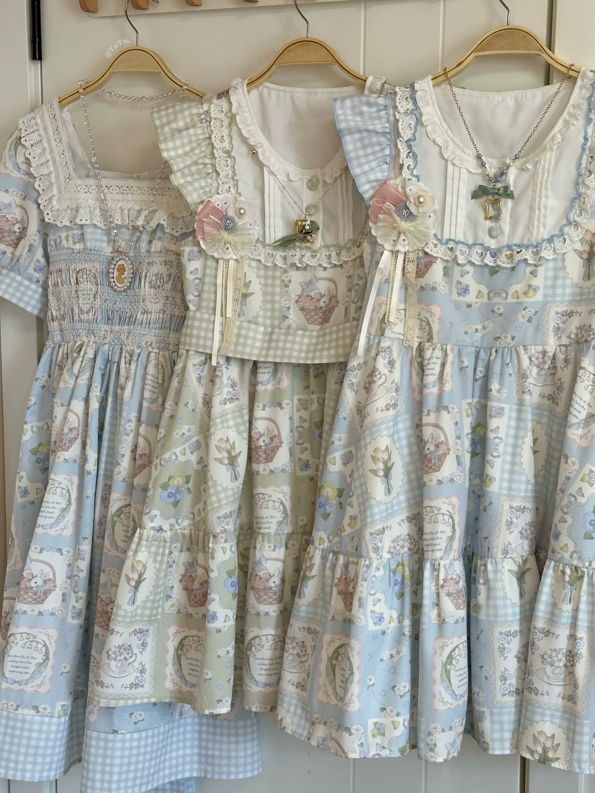 S-XL Spring Prelude Original Pastoral Print Lightweight Daily Lolita Dress