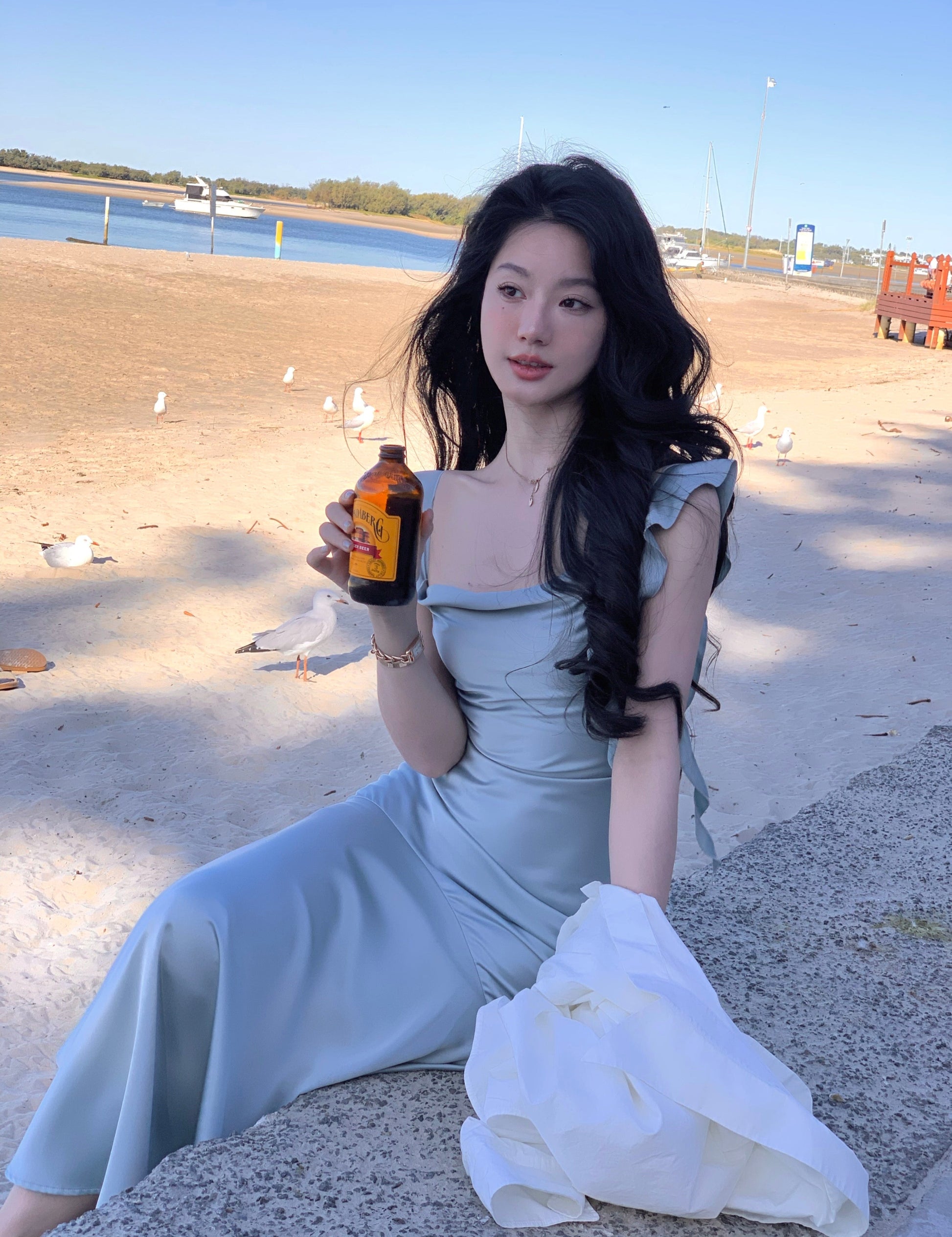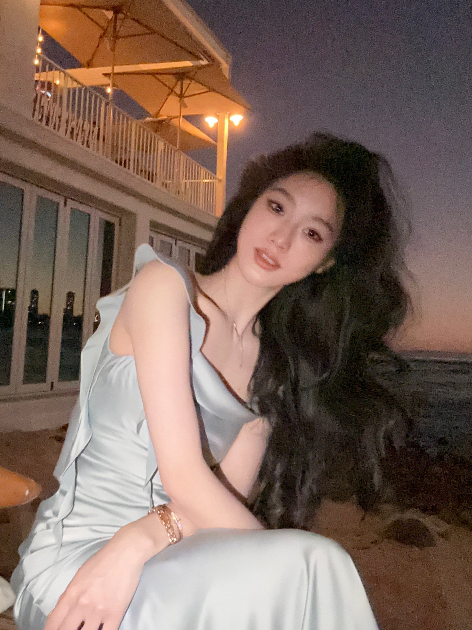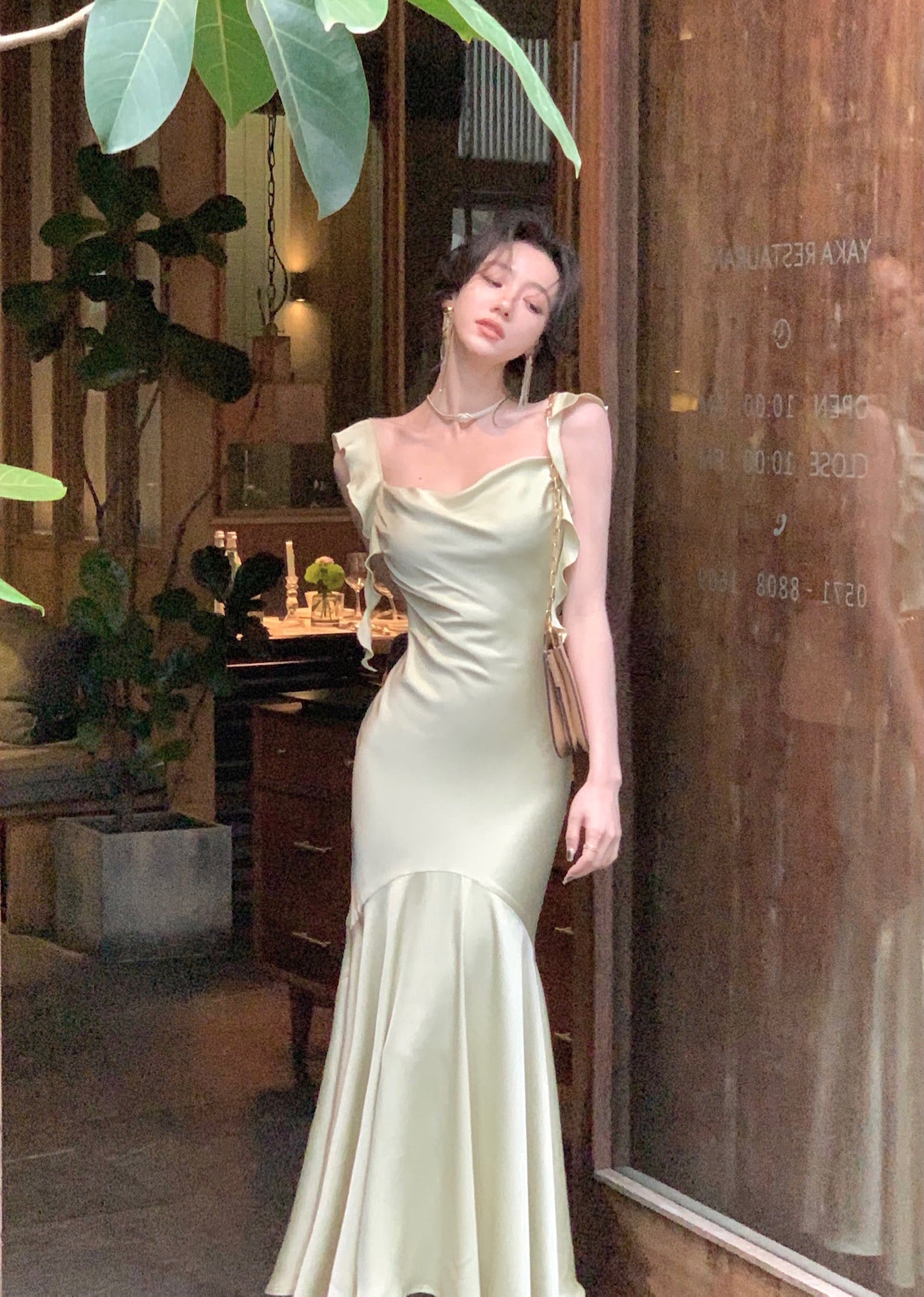 S-XXL Ruffled Strap Satin Dress Fitted Mermaid Tail Gown Long Dress