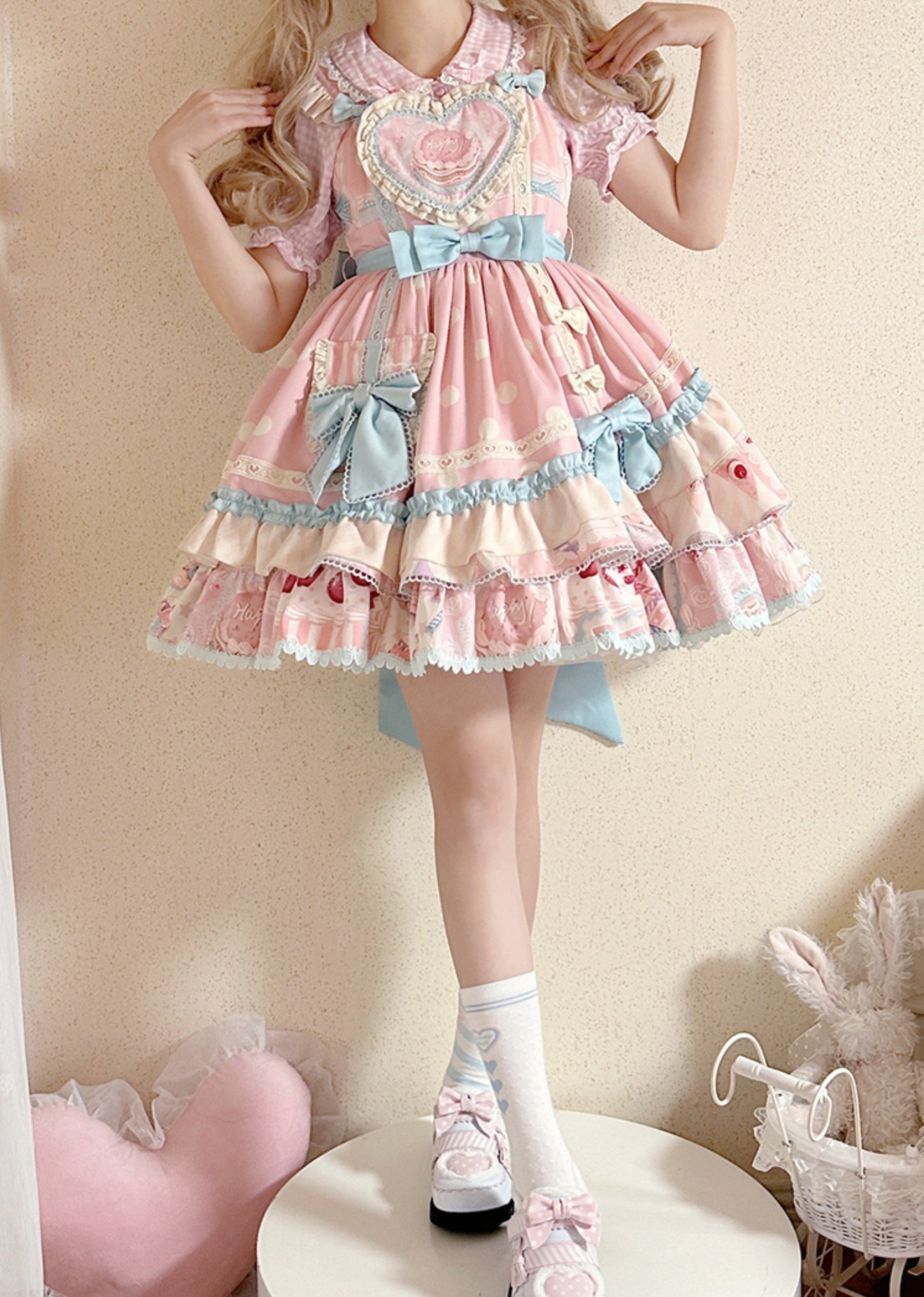 Icing Sweetheart JSK Pastel Tiered Lolita Dress with Lace Trimmings And Big Bow